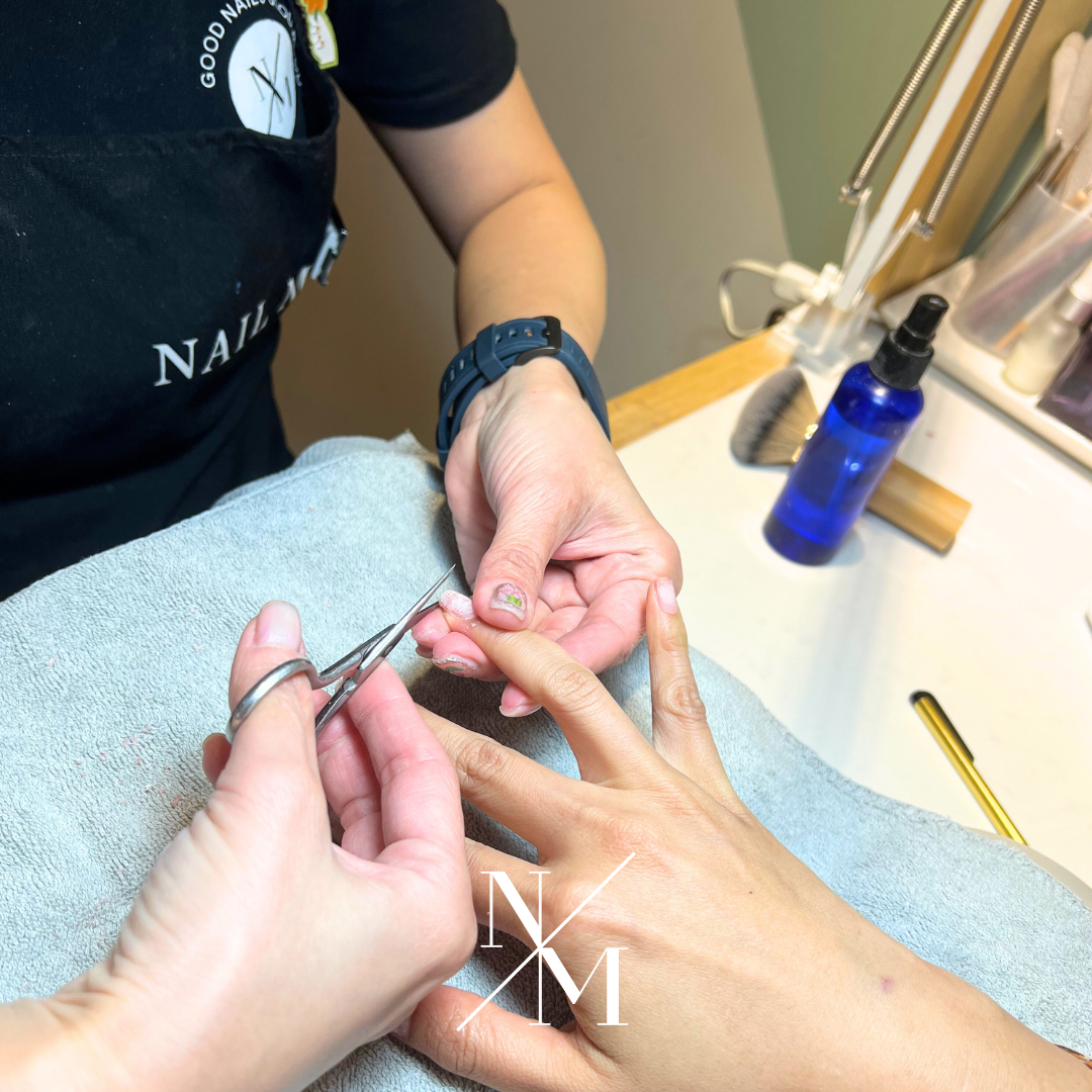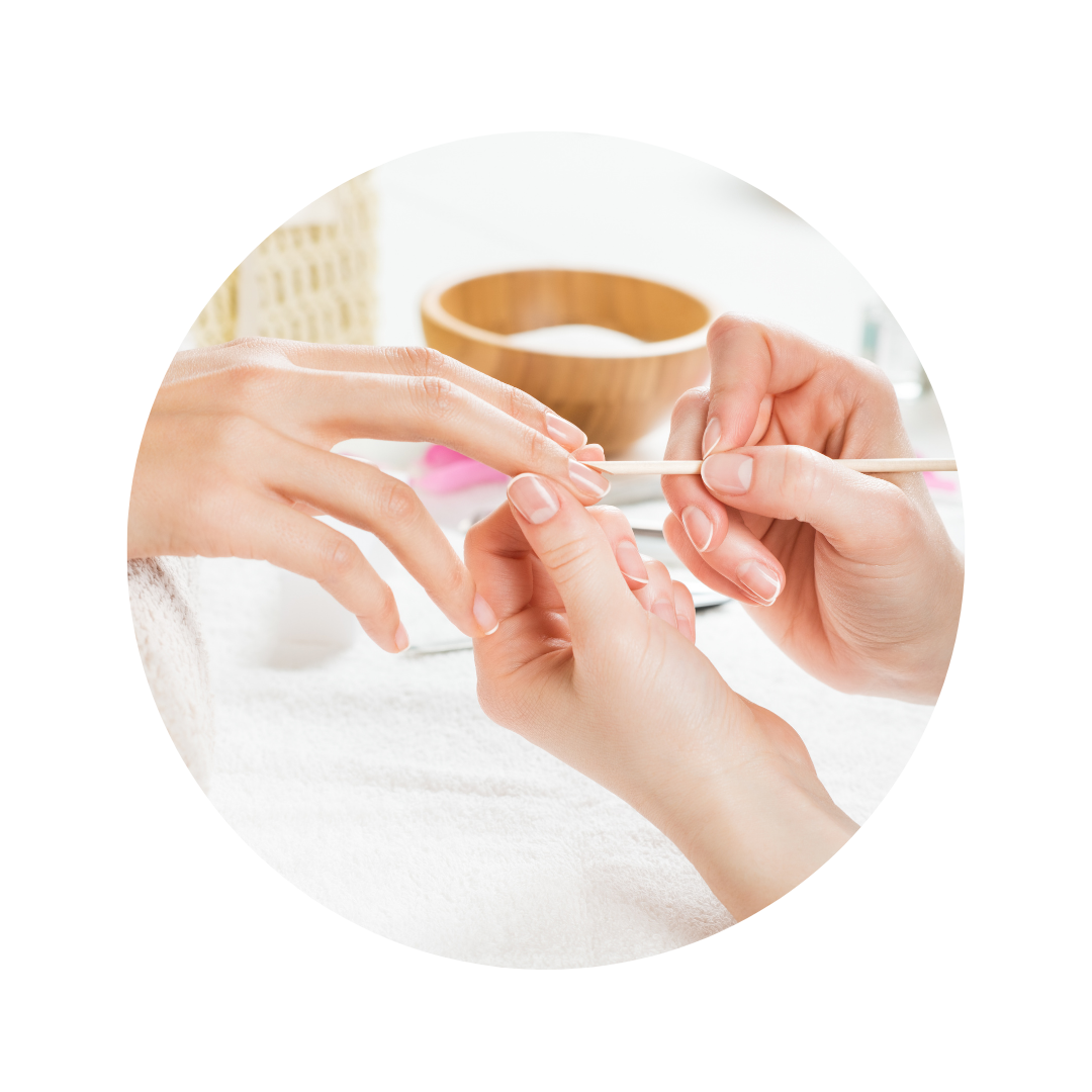 Nail shaping, a throughout cuticle care, a nail polish color of your choice, followed by nourishing cream and cuticle oil application; polish removal if necessary.