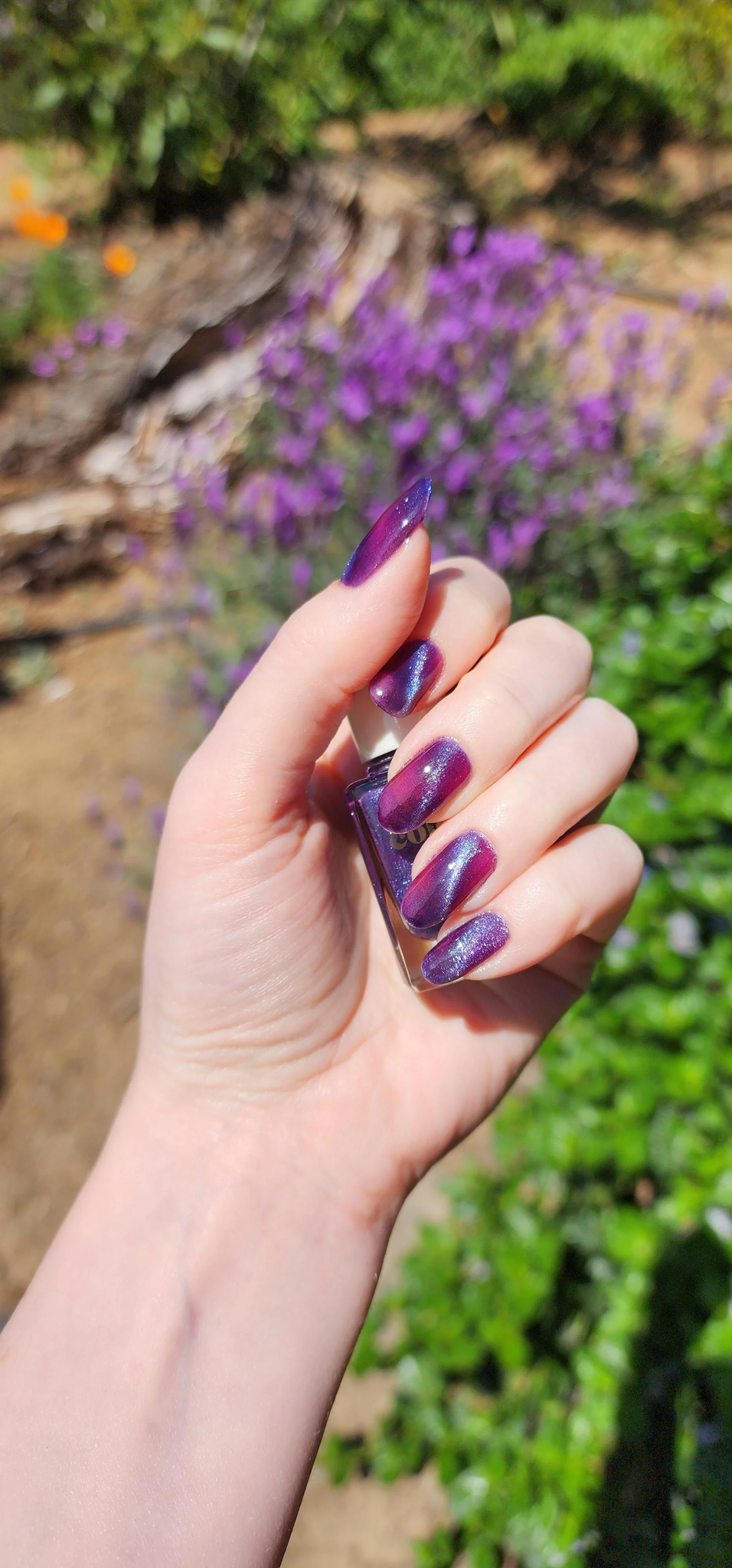 Cassiopeia is purple nail polish with silvery-blue magnetic pigment.