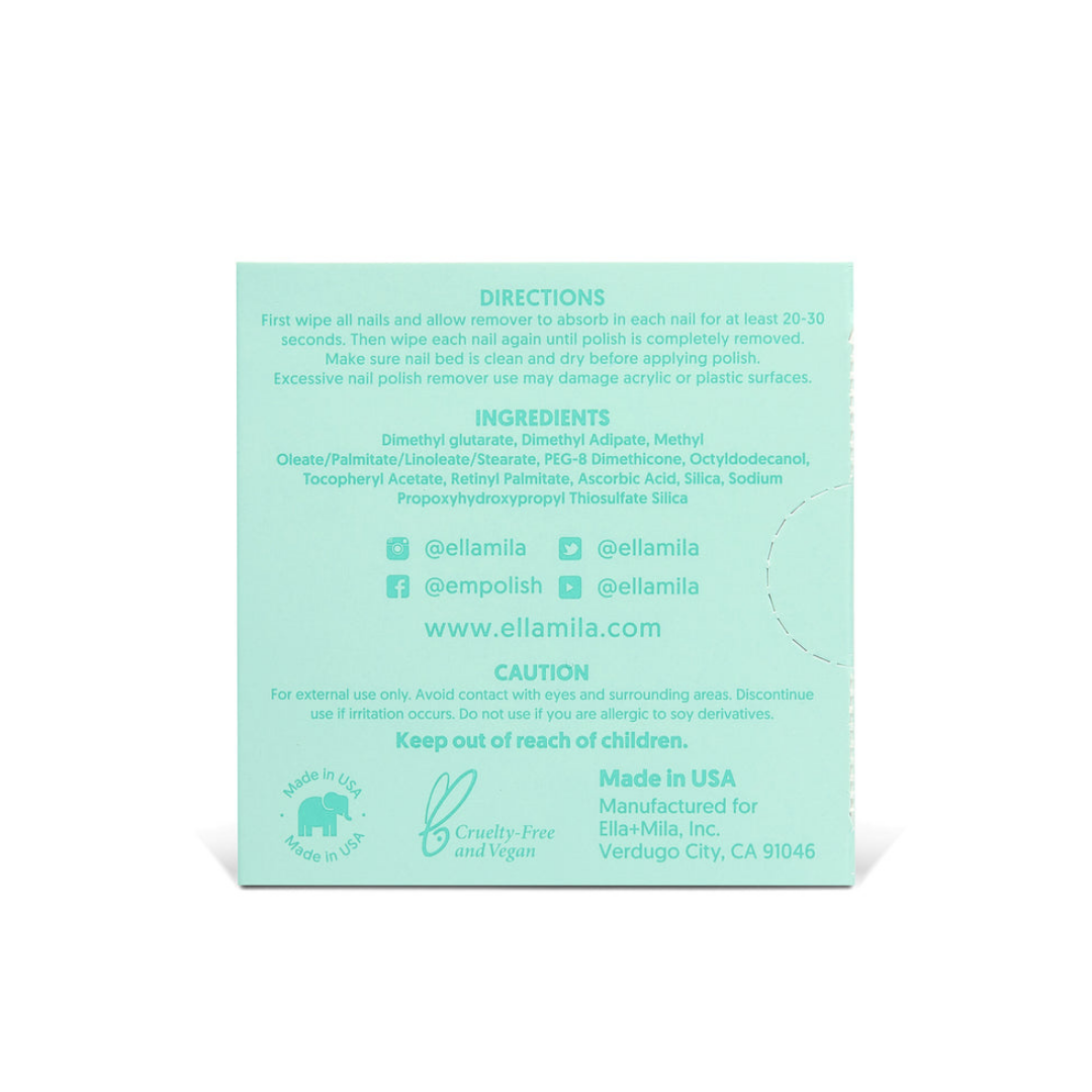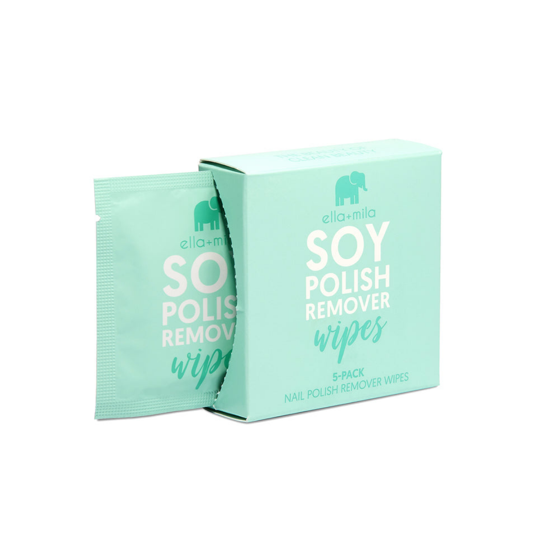 Soy-based nail polish remover wipes are designed to effectively remove all natural nail polishes. Ingredients include Vitamins A, C & E, as well as Lavender Essential Oil, all of which promote healthy and moisturized nails. This product does not contain acetone or harsh acetates, which will dry out your skin and damage the nail and cuticles.