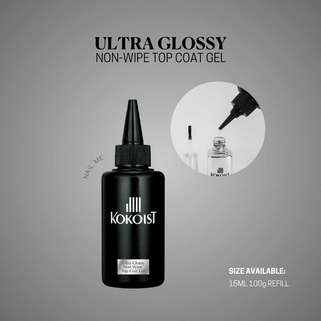 The Ultra Glossy is a Non Wipe Top Coat that gives an everlasting shine without the tacky texture. It is a soft gel formula that is compatible with any material, including soft gel polish and acrylic.