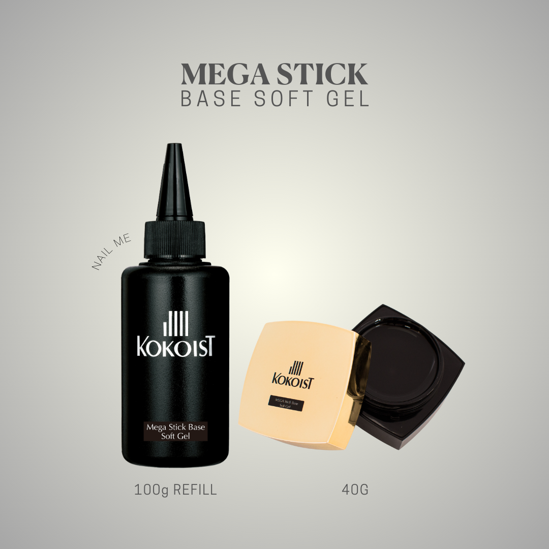 Mega Stick Base Soft Gel  以其卓越的黏合耐久性,靈活性和柔韌性而聞名。這種柔軟的凝膠基底可以單獨用作凝膠指甲基底,也可以用作為更堅硬的 Bonding Duo底層。